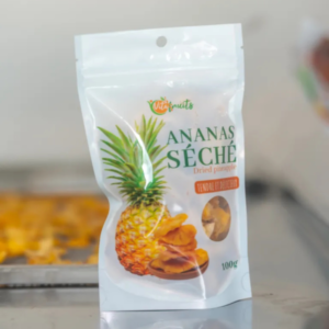 L’ananas séché naturel Vitafruits 100g est un pur concentré de soleil béninois : des tranches d’ananas 100% fruit, séchées en douceur pour préserver leur parfum tropical, leur douceur naturelle et leurs qualités nutritionnelles. Sans sucre ajouté, sans conservateurs ni colorants, c’est le snack sain et gourmand qui vous accompagne partout – au bureau, à l’école, en voyage ou après le sport.